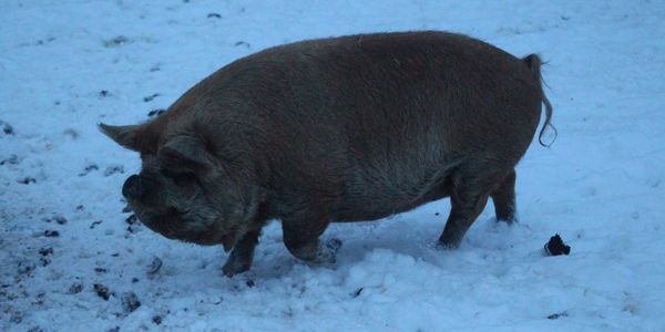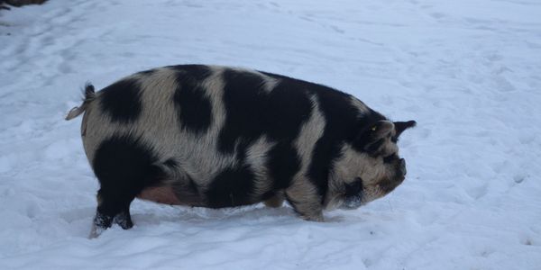 Proud to offer this Haunene rare line gilt. This gilt is just over one year old and ready to be bred. Reached over 200lbs at a year old and comes from 200 in 12 sire and dam. Dam is rare line ILF Haunene 9 "Pudding Pop" and sired by our great and top producing almost 11 year old boar TIHF Te Whangi 8 "Gunther" This gilt has 7/7 teats and will go on to be a great pasture pork producer.