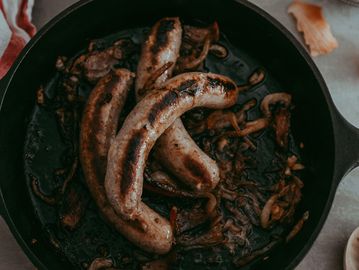 A sausage that packs a punch of flavor including huge chunks of gruyere, fresh thyme and house-prepared caramelized onion. Gluten Free.