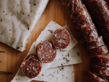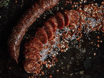 A fermented dry cured sausage full of amazing flavor of red wine, salt, dark rum, coriander, garlic, black pepper, cayenne and cloves. Gluten Free