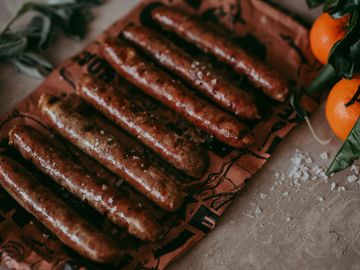 A sausage subtle and complimentary flavours of feta, balsamic and arugula. Great for a simple meal with a dinner or lunch salad. Gluten Free.