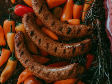 A mix of spices including oregano, paprika and cayenne. A great sausage to toss into soup, place it on pizza, add to pasta or even better throw it on a bun. Gluten Free.