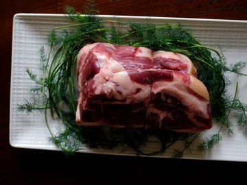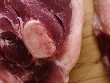 The meat is dark red with marbling throughout giving it flavor, tenderness and juiciness. Due to Kunekunes majority of feed intake being forage based, their fat has a low melting point which is like nothing that we had tasted from any other swine breed, it literally melts in your mouth with a very much edible texture.