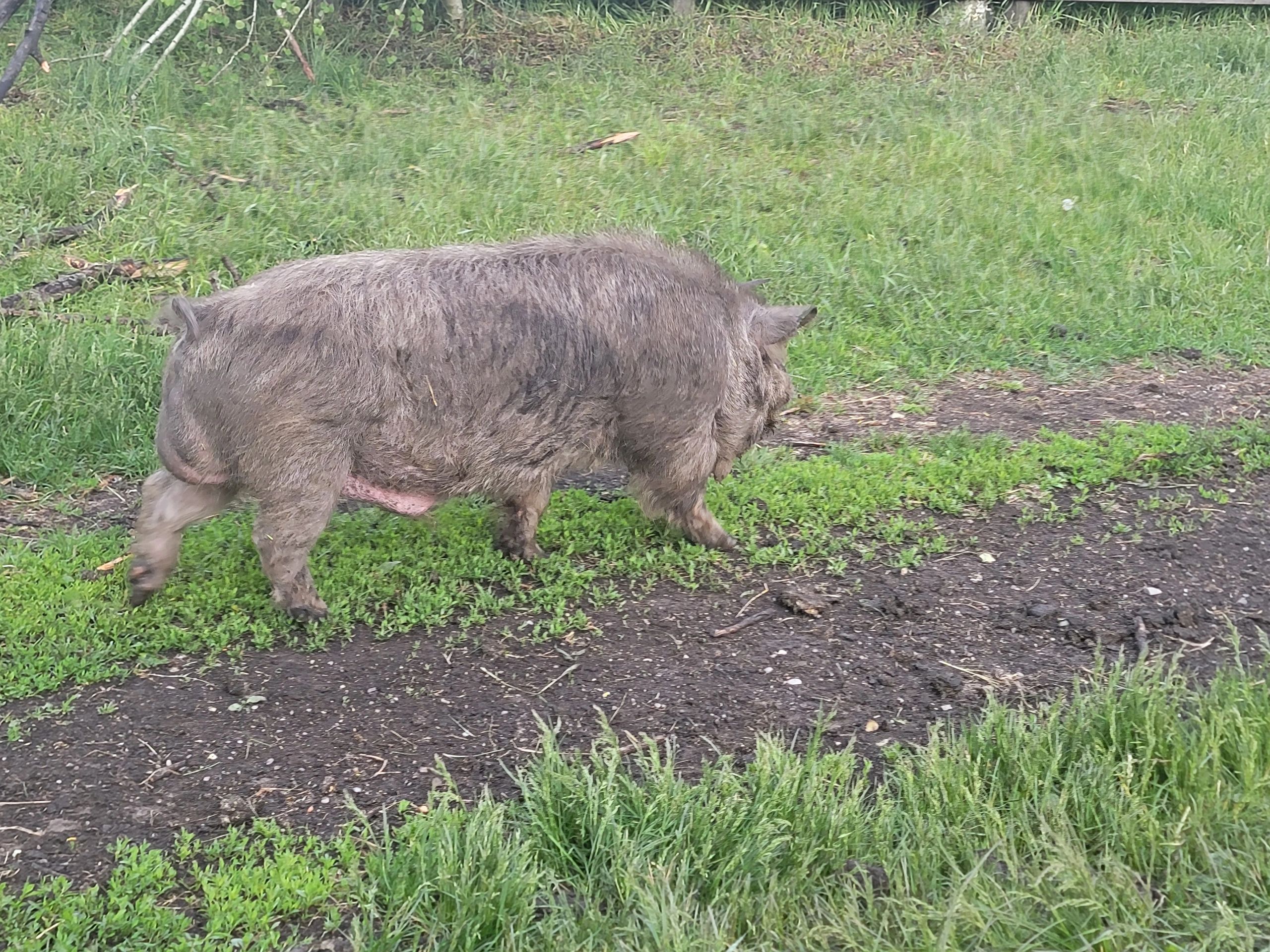 Gunther impressed us from Day 1 to what true Kunekune Pasture Pork breeding stock is made for. He has amazing length and size with a gentle disposition. He has sired multiple litters for us to carry on his genetics.