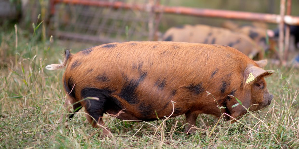 Known for their short upturned snout and less prone to rooting than other swine breeds!